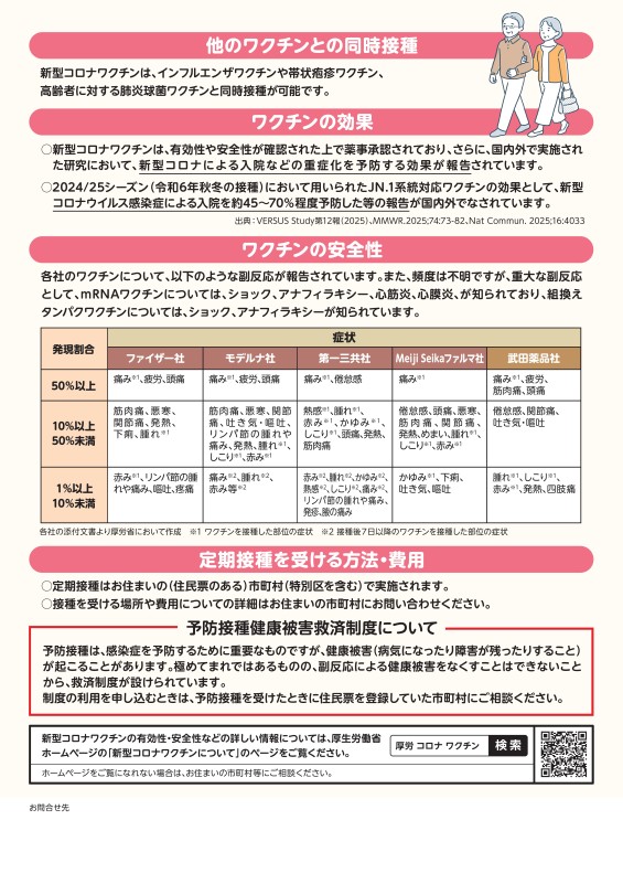 ※予防接種法による定期接種となる場合、予防接種を受けたことによる健康被害であると厚生労働省が認定した場合に、予防接種法に基づく健康被害の救済措置の対象となります。給付申請の必要が生じた場合は、当院または高浜町保健福祉課 保健グループ(℡0770-72-2493)までご相談ください。